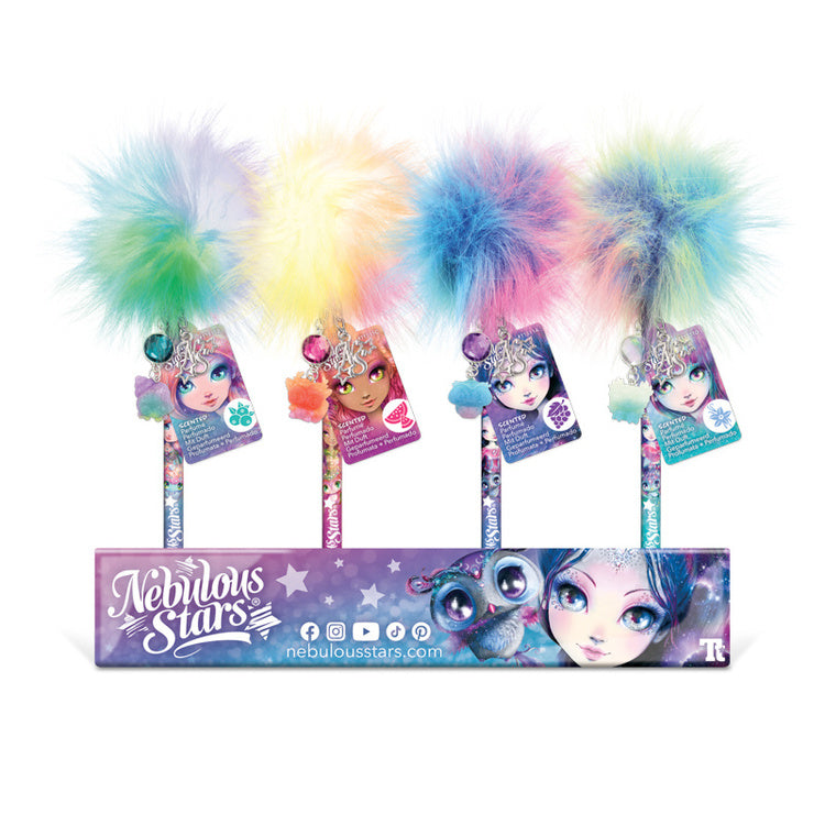 Uroczy długopis zapachowy z pomponem i kryształową zawieszką Nebulous Stars, który rozświetli szkolną wyprawkę i sprawi radość każdej małej marzycielce!