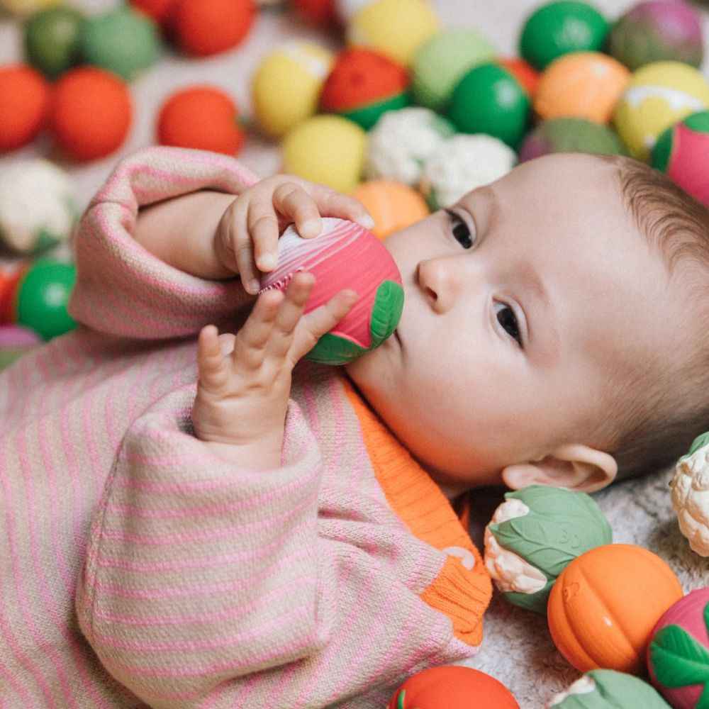 Sensorische Bälle für Babys von Oli&Carol in der Version: Gemüsesalat