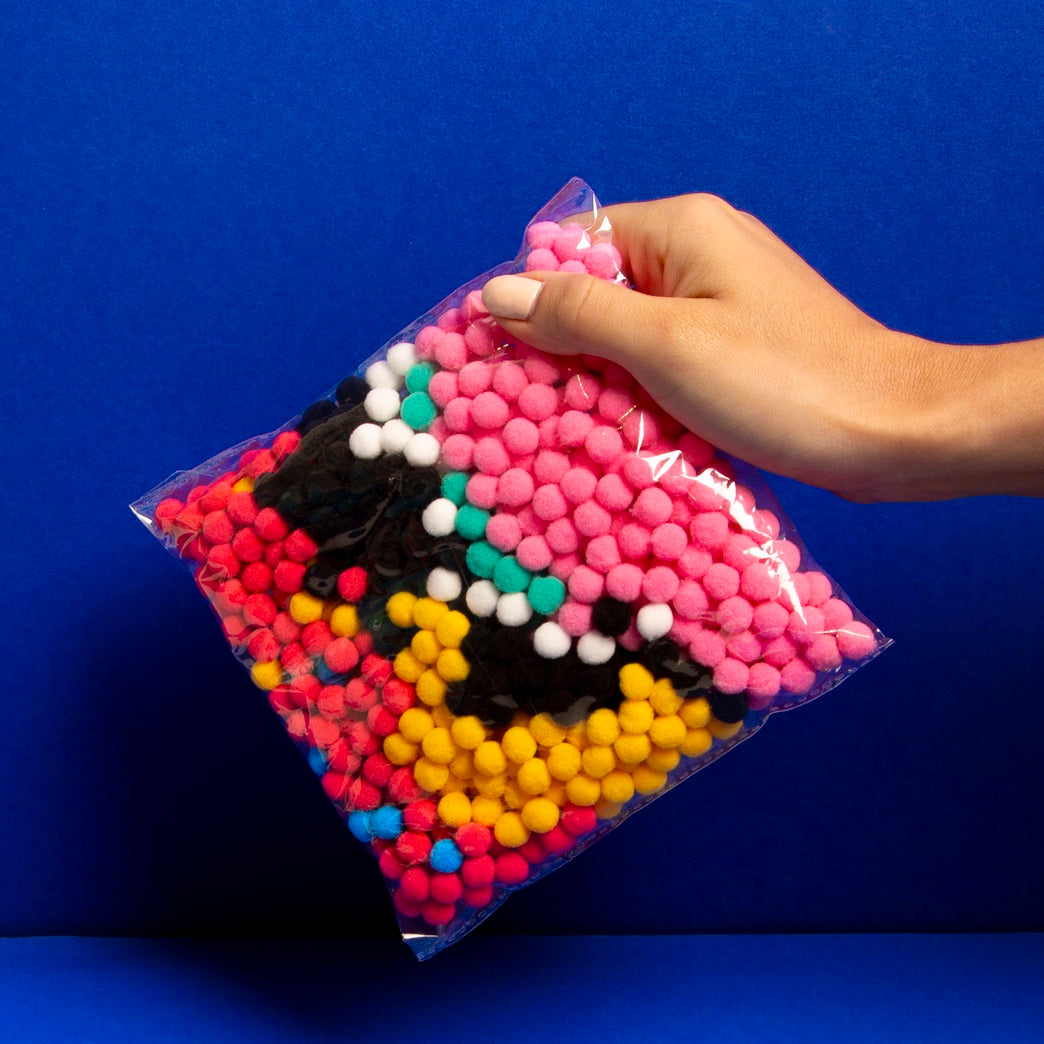 - Inhalt: 1 x farbige Leinwand auf Holzrahmen + 500 farbige Pompons