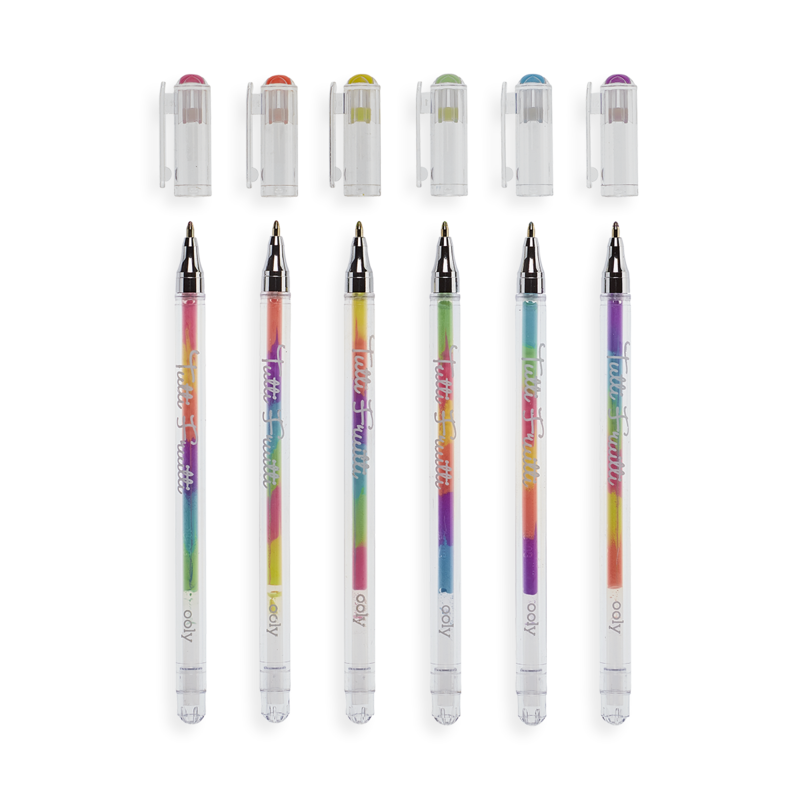 Die bunten, duftenden Gelstifte von Tutti Fruitti sorgen dafür, dass jedes Bild und jede Notiz wunderbar bunt und duftend wird. Wenn Sie mit den Stiften von Tutti Fruitti schreiben, erwartet Sie eine bunte Überraschung. Die Tutti Fruitti-Stifte sind mit wunderschöner, mehrfarbiger Sorbet-Gel-Tinte gefüllt, die beim Schreiben ihre Farbe ändert. Schreiben und Zeichnen wird nie mehr so sein wie zuvor. Was auch immer Sie schreiben und zeichnen, es wird unglaublich bunt und dazu noch fruchtig duften. Die Tutti Fruitti Mehrfarbigen Duftenden Gelstifte sehen wunderschön aus, duften köstlich und schreiben wie Seide – niemand kann ihnen widerstehen. Das Set enthält 6 Stifte mit Fruchtdüften.