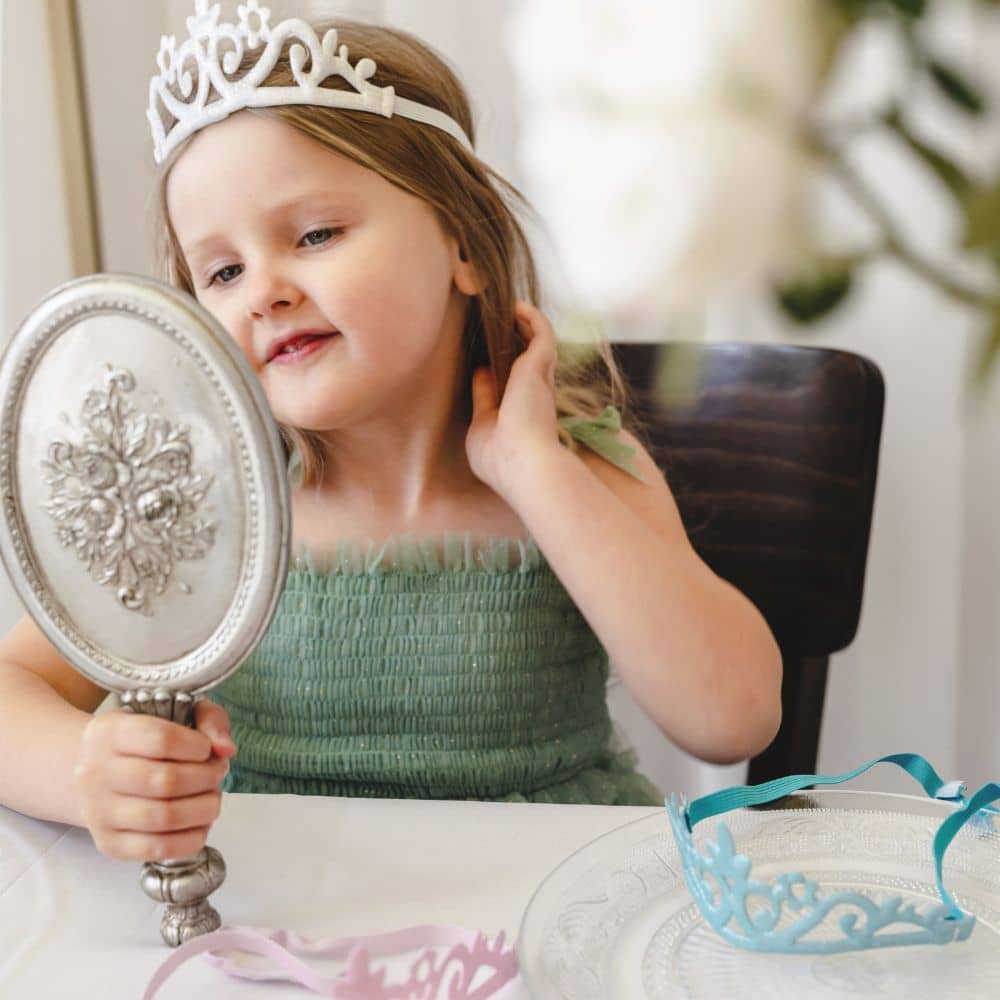 Dieses bezaubernde Set aus drei Glitzerkronen ist ein Traum für jedes Kind, das gerne Prinzessin, Königin oder Königin eines magischen Königreichs spielt. Die blaue, rosa und silberne Krone schimmert wunderschön im Licht und verleiht jedem Outfit Glanz – sowohl beim täglichen Spielen als auch auf einer Geburtstagsparty, einem Kostümball oder beim Karneval.
