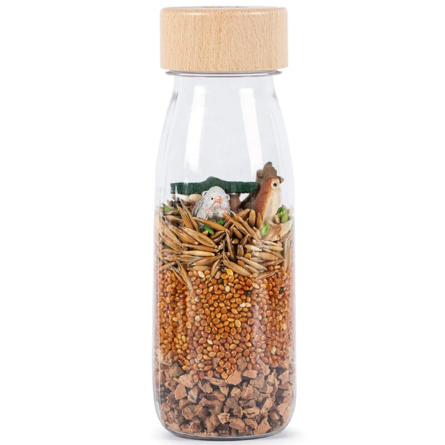 Die Sensorikflaschen von Petit Boum sind eine bunte Welt in einer kleinen, kindgerechten Form. Sie unterhalten, lehren und regen die Fantasie an! Lassen Sie Ihr Kind die Flasche bewegen, schütteln und damit spielen, um die Farben und thematischen Figuren in der Flasche zu entdecken. Der vielfältige Inhalt der Flaschen ermöglicht es, neue, interessante Geräusche zu entdecken, die für die in der Flasche versteckten Elemente charakteristisch sind. Das Spielen mit der Flasche von Petit Boum fördert die Sinne und die Fantasie des Kindes! Erkennst du die Flaschen an ihren Geräuschen? Findest du ein Tier darin?