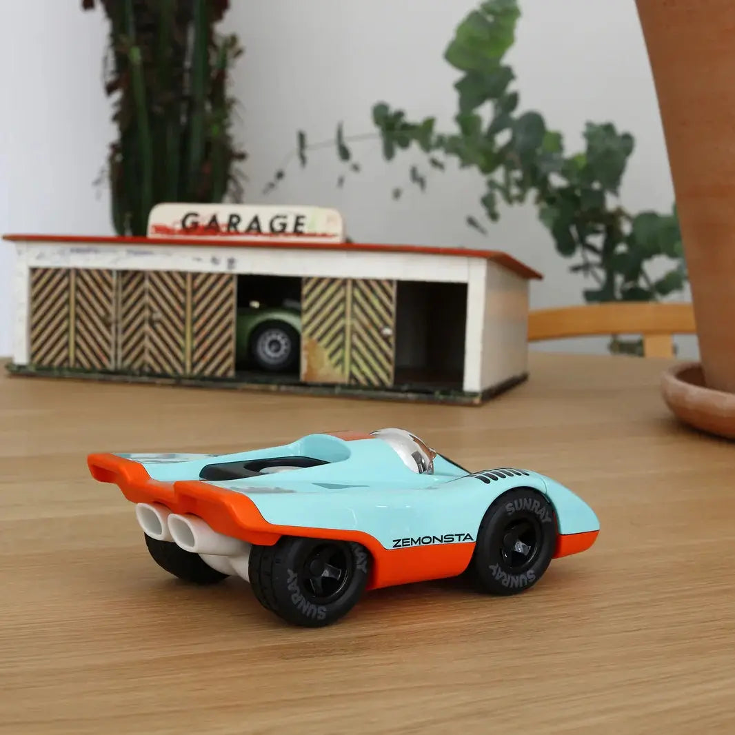 Playforever ZEMONSTA – ein kultiges Rennauto, inspiriert von einer Rennstreckenlegende, das mit seinem Design begeistert und die Fantasie von Kindern ab einem Jahr anregt.