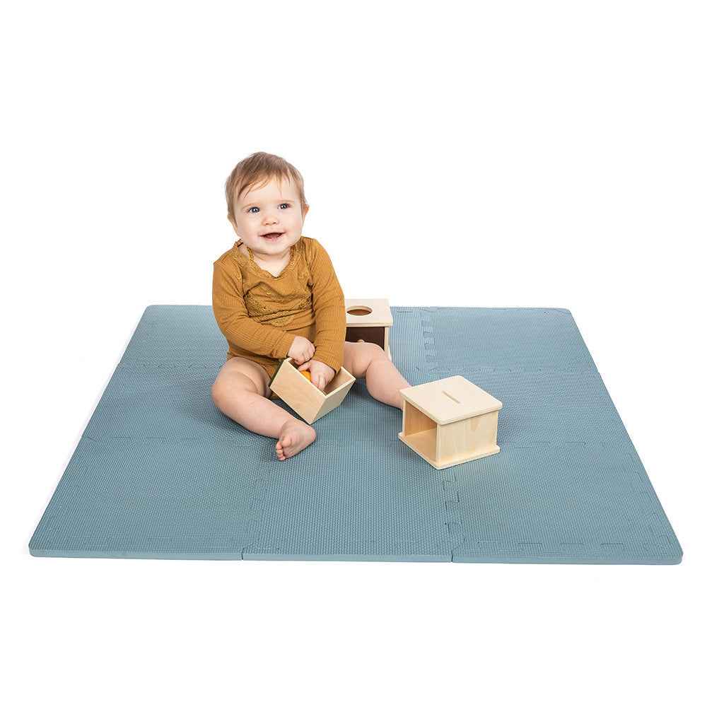 Die Vielseitigkeit der That's Mine Matte macht sie ideal für jedes Interieur und jeden Anlass. Sie besteht aus 9 Puzzleteilen, die beliebig kombiniert werden können, um Form und Größe an die Bedürfnisse Ihres Raums anzupassen. Sie eignet sich perfekt für den Einsatz zu Hause, im Garten und auf Reisen. Sie können sie alleine oder als Unterlage für eine sensorische Matte verwenden, um eine noch anregendere Umgebung für die Entwicklung Ihres Kindes zu schaffen.