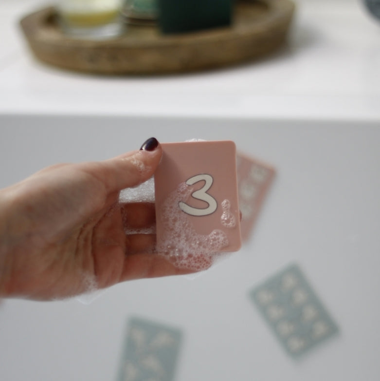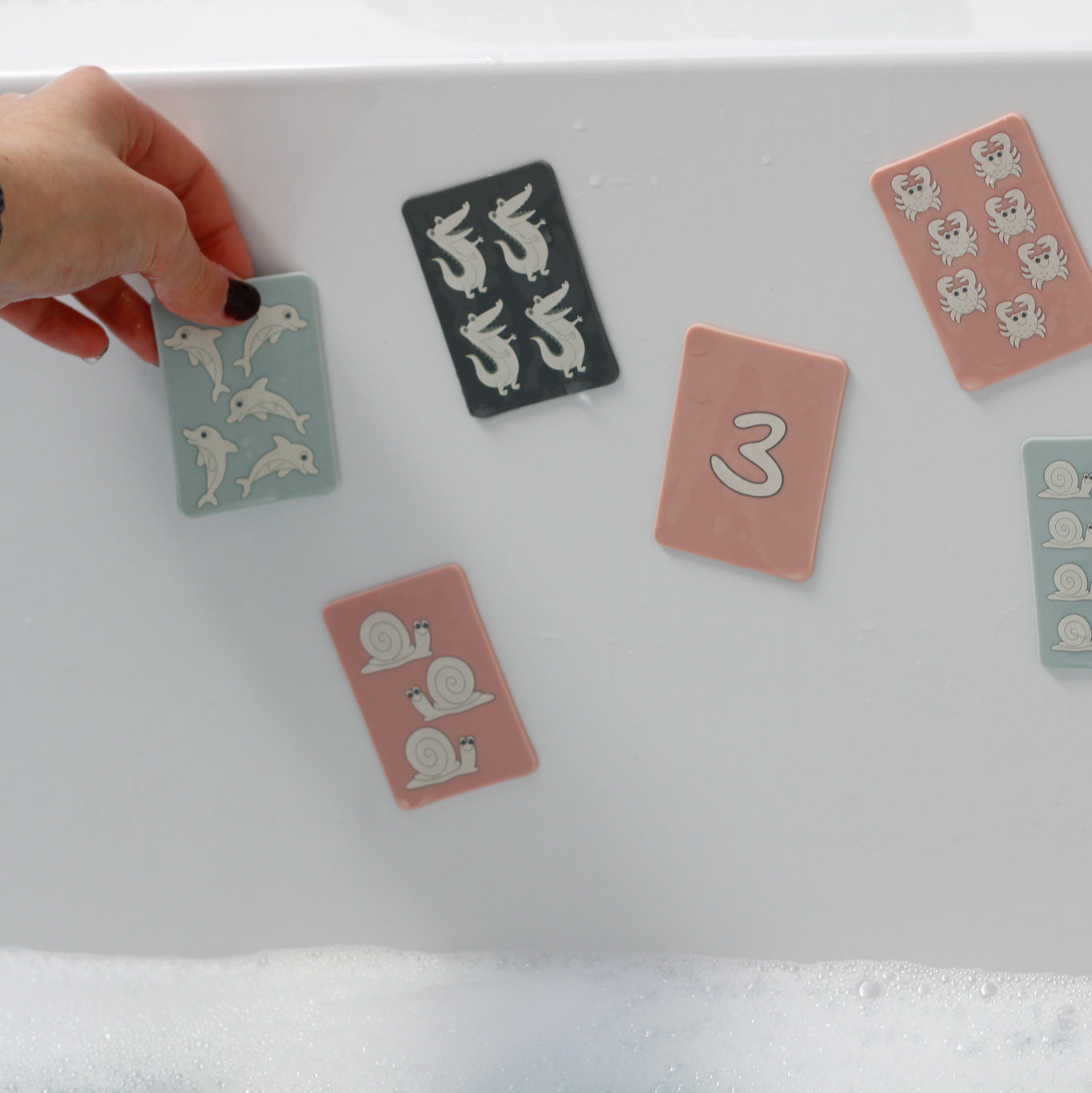 Sie eignen sich hervorragend, um Kinder in die Welt der Zahlen einzuführen, können aber auch für ein Gedächtnisspiel oder als zweiteiliges Puzzle verwendet werden. Sie sind aus sicherem Silikon hergestellt, das auf glatten, nassen Oberflächen wie Badewannen und Fliesen haftet.