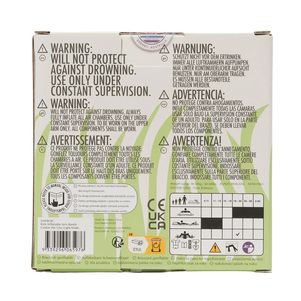 Ermutigen Sie Ihr Kind, im Wasser zu spielen, mit Hilfe der farbenfrohen Cookie the Croc Ärmel! Ihr einzigartiges Krokodil-Design ist nicht nur ein echter Hingucker, sondern motiviert Ihr Kind auch dazu, im Schwimmbad aktiv zu sein. Sie sind ein unverzichtbares Hilfsmittel beim Schwimmenlernen - sie unterstützen die Entwicklung des Selbstbewusstseins und gewährleisten gleichzeitig volle Bewegungsfreiheit. Ideal für den Urlaub, den Gartenpool oder einen Ausflug an den See. Sicher und leicht - speziell für die kleinsten Schwimmer entwickelt.
