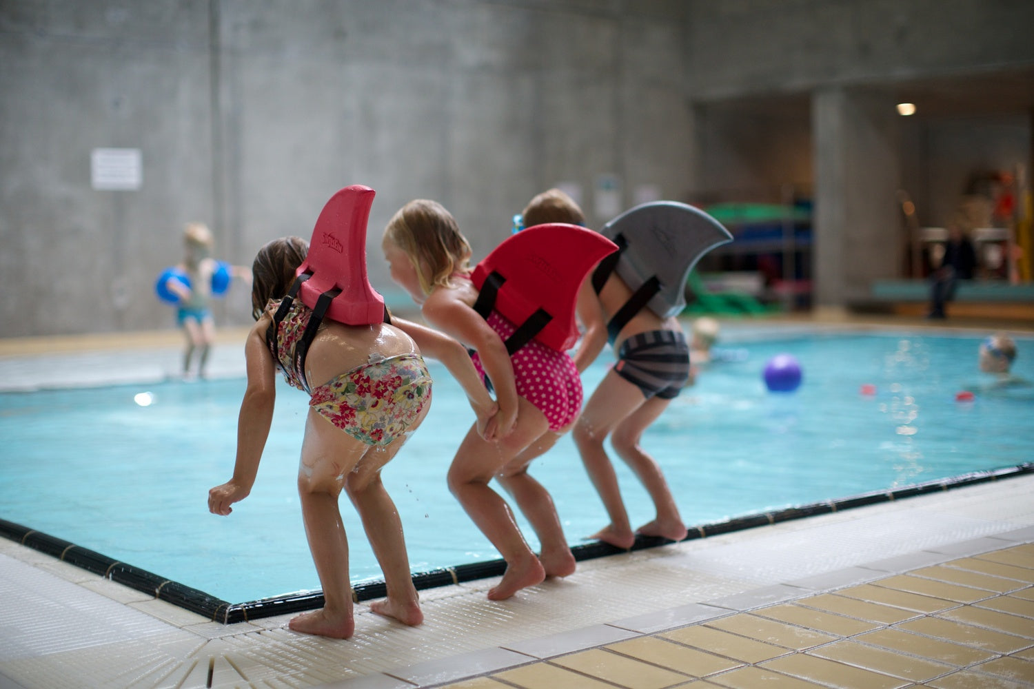 SwimFin inspiriert Kinder und regt zum Spielen an. Ihre Form erinnert an eine Haifischflosse, die die Fantasie anregt und Kinder zu Spielen, Experimenten und Wasserspaß motiviert – was gleichzeitig zum Schwimmenlernen anspornt.