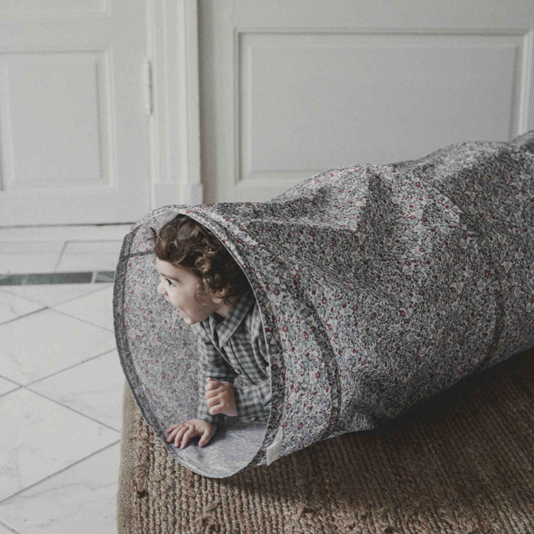 Schöner beiger Kindertunnel Flora Bunnies Rouge von That's Mine. Der Kindertunnel hat ein Tiermotiv und ist 182 x 46 cm groß.