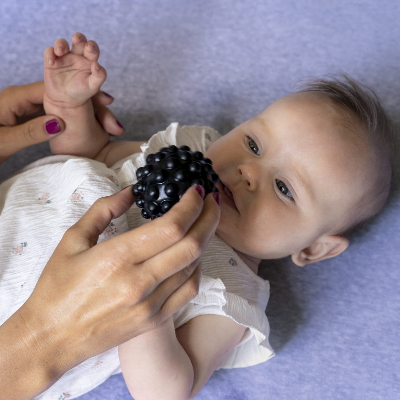 - Sie eignen sich auch während des Zahnens, da die Struktur der Bälle das Zahnfleisch massiert.
