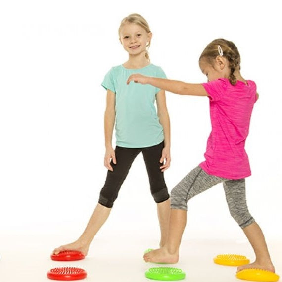 Sensorscheiben für Gleichgewichtsübungen, Haltungskorrekturen und Fußmassagen. Sie eignen sich sehr gut zum Spielen mit Kindern und machen Gruppenaktivitäten attraktiver. Spezielle Noppen stimulieren die Sinnesrezeptoren und verbessern die Durchblutung. Die Scheiben können auch als sensorische Sitzkissen für Kindergartenkinder verwendet werden.
