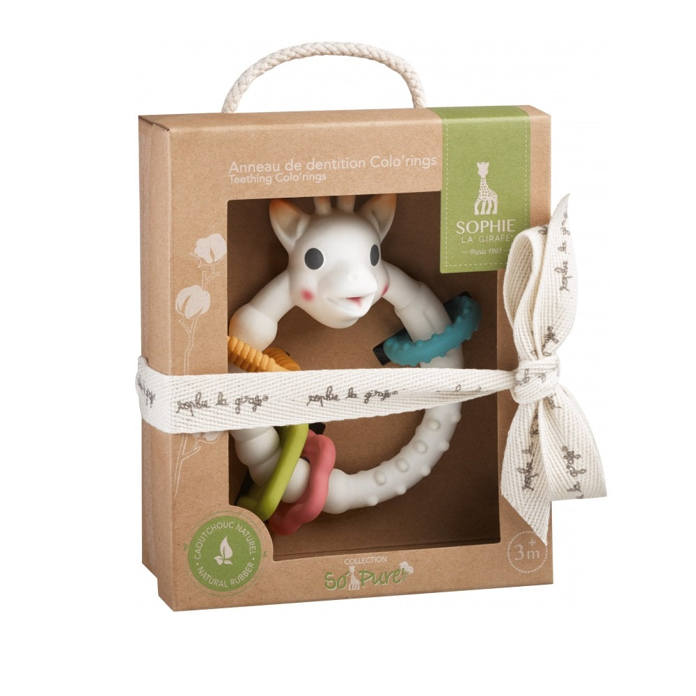 Bunter Beißring auf einem Ring Sophie die Giraffe - So'Pure