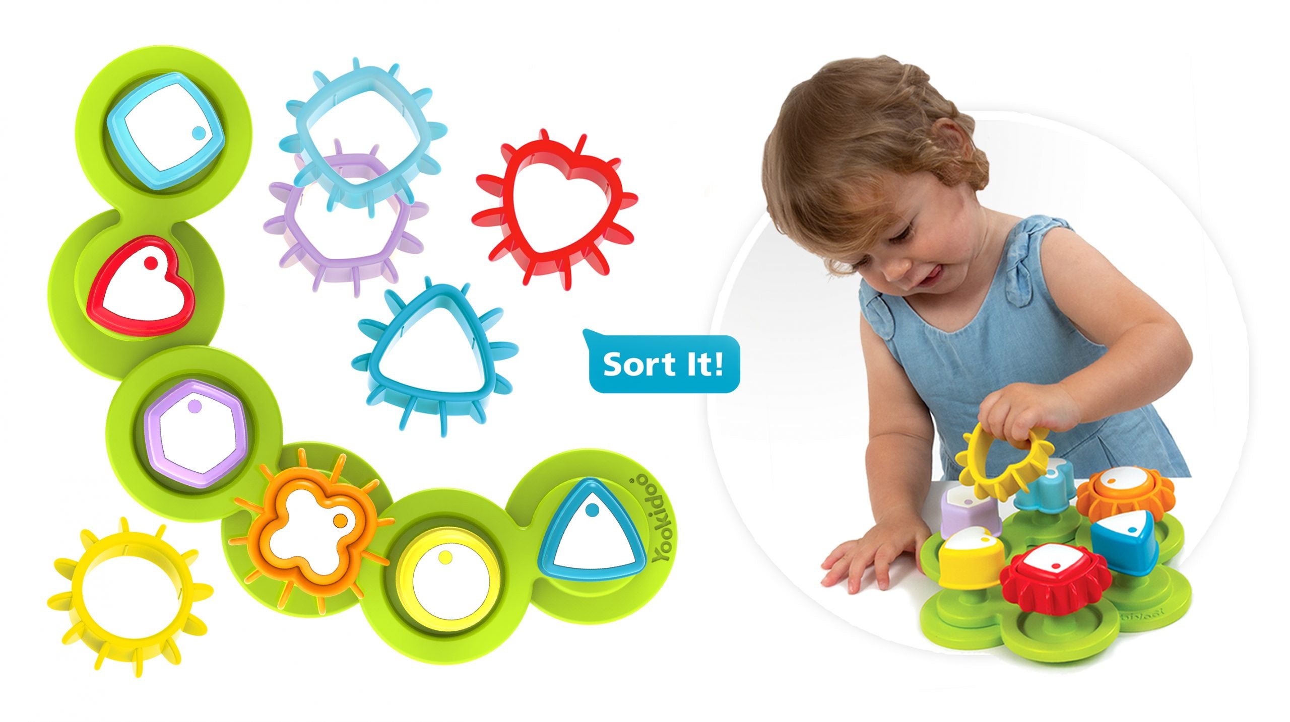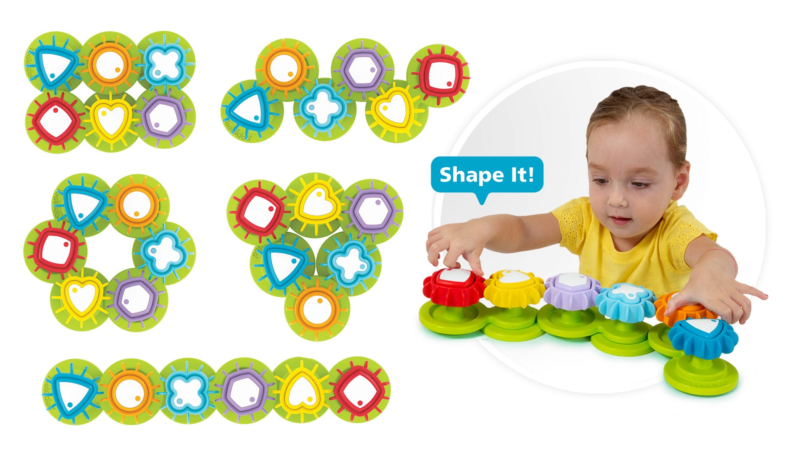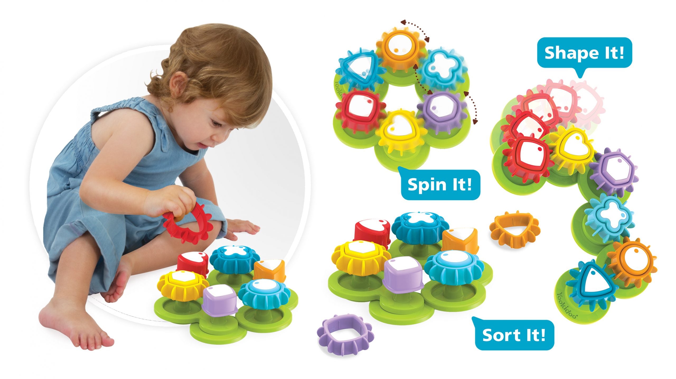 Ein neuer, innovativer Formensortierer mit beweglichen Zahnrädern der bekannten und beliebten Marke Yookidoo. Es handelt sich um ein Lernspielzeug für Kinder, mit dem die Kleinen Farben und Formen erkennen lernen und gleichzeitig ihre motorischen Fähigkeiten stärken. Der Lernsorter ermöglicht verschiedene Spielvarianten. Das Kind kann sortieren, zusammenpassen, entwerfen und drehen. Das ist eine hervorragende Gymnastik für kleine, noch ungeübte Hände. Der flexible Sockel des Formensorters kann auf viele verschiedene Arten zusammengestellt werden. Egal, wie das Kind ihn zusammenstellt, die Zahnräder drehen sich immer!